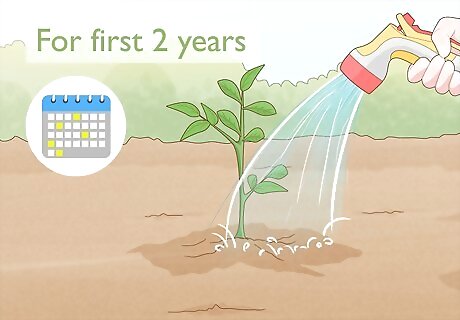 Water your plants once every other week for the first 2 years. Over the course of the first 2 years, you may not notice much progress with your peonies. Peonies can live over 25 years, but they take a while to get going. During the first 2 years, water your plants every other week to ensure that the soil retains moisture and the roots get some water. Apply a soft stream of water to the top soil for 5-6 seconds when you go to water the rest of your garden. You do not need to water your peonies in the winter. You can water less frequently once stems begin to grow. If your flower is going to bloom on a given year, you’ll notice the stems in early-to-mid spring.