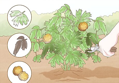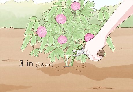 Cut your flowers down to 3 in (7.6 cm) as the following winter sets in. Once your plants start to wither, you need to trim them down to avoid starving the roots. Grab a set of garden shears a week before the first freeze of the winter season. Cut your flowers down until there are only 3 inches (7.6 cm) of stem remaining near the soil. Mulch the soil and repeat the process to ensure that your flowers come back next year. You can prune your plant to remove dead bulbs if you’d like, but peonies typically don’t require much (if any) pruning.