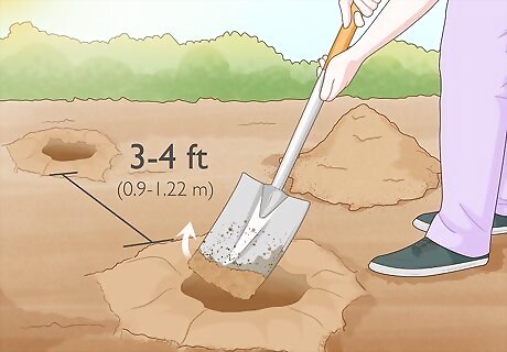 Place your holes 3–4 ft (0.91–1.22 m) apart to give the peonies room. Once you’ve selected an area to plant your flowers, give each plant ample space to keep the roots from competing for resources. If you plant your peonies too close to one another, the roots will fight over water and nutrients, causing at least one of your plants to become underdeveloped. Giving each root system ample space in your yard or garden is the best way to ensure that your plants grow healthy and strong.