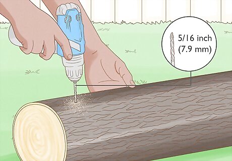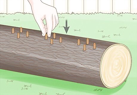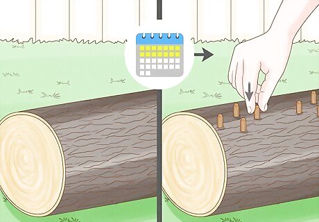 Choose a good log. The wood should be taken from a hardwood tree like oak or sugar maple. If cutting a branch or log from your own tree, make the cut between late fall and mid-spring for ideal moisture content and select a portion that is 3 to 8 inches (7.6 to 20.3 cm) in diameter. Each log should be 3 to 5 feet (0.9 to 1.5 meters) long. If you do not have trees on your property that you can take wood from, buy logs from sawmills or home improvement stores.