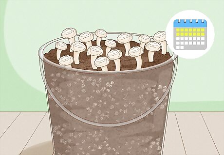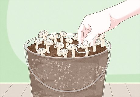 Pick the mushrooms quickly. You only have about one week to harvest fully mature mushrooms before they go bad. Snip them off at the point where they come out of the surface or twist and pluck them by hand.