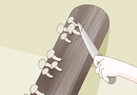 Harvest quickly. After mushrooms emerge, you only have about one week to harvest them before they go bad. You can either pluck the mushroom by twisting and pulling it up, or you can cut the mushroom at the point where the stem meets the log.