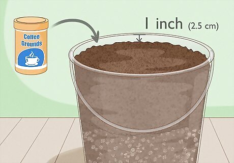 Continue filling the bucket with grounds and spawn. There should only be about 1 inch (2.5 cm) of empty space in between the surface of the mixture and the rim of the bucket. If you do not have enough grounds and spawn to fill the bucket, drill a few holes into the side of the bucket about 1 inch (2.5 cm) above the surface of the grounds and spawn.