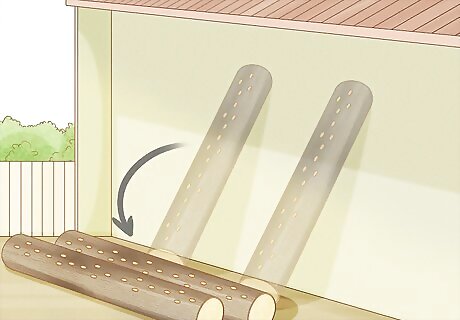 Store the logs. Store your logs outside in a location that receives partial sun and partial shade. The logs should be stored vertically, leaning against one another or against another object.