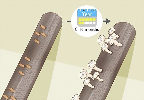 Check regularly. The mushrooms can take 8 to 16 months to appear.