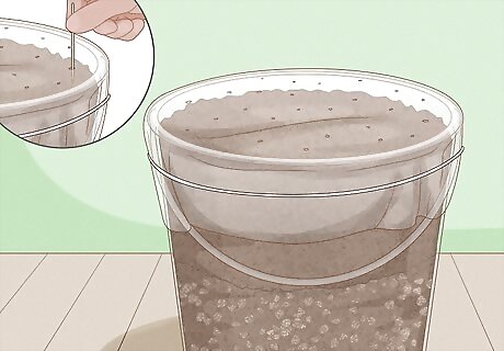 Cover the bucket with plastic wrap. The plastic wrap helps the mixture retain moisture. Puncture the wrap, poking several holes in it. This will prevent the build up of carbon dioxide.
