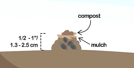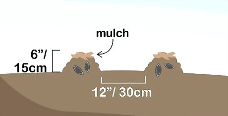 Plant summer squash seeds in 6-inch (15 cm) hills that are 12 inches (30 cm) apart. These hills will help provide the soil and nutrients for our summer squash to grow. Cover each summer squash seed with an organic mulch to help maintain soil moisture.