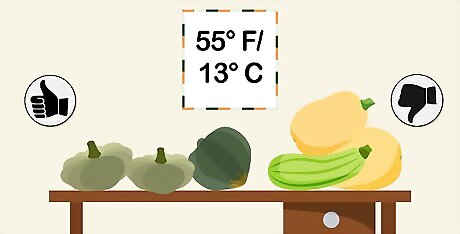 Store winter squash in a dry location that is around 55 °F (13 °C). Do not pile winter squash on top of one another, and remove any squash that show signs of damage. Squash varieties like acorn squash and striped delicata squash should be eaten a few weeks after harvest. Butternut squash should be eaten after a few months of storage. Round squashes like Blue Hubbard squash can be stored until March or April. For longer storage, cook, mash, and freeze your winter squash.