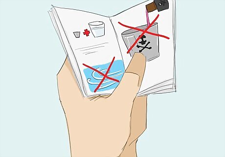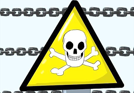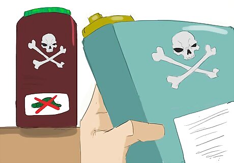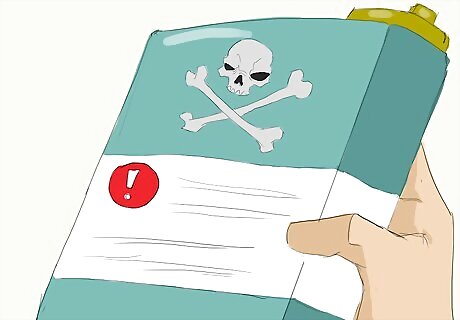 Read the warning label. The warning label contains specific information about the product. Some obvious information may include the following. Its toxicity level. "CAUTION" means that it is mildly toxic. Lethal dose is an ounce or more. "WARNING" means that it is moderately toxic. Lethal dose is between a teaspoon and tablespoon, "DANGER" means that it is highly toxic. Lethal dose is trace amounts. Avoid fumes, use in well ventilated area. Liquid pesticides may produce poisonous fumes when the container is opened, or while the product is being mixed and applied. Avoid contact with skin. Many chemical products may be absorbed through skin. Avoid sparks or open flame. Pesticides are often suspensions in petroleum distillate solvents, which can be highly flammable.