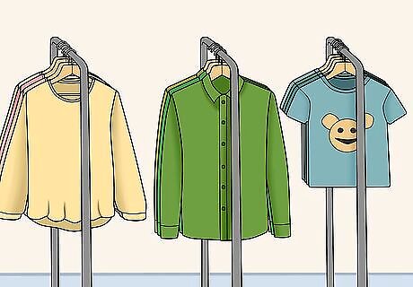 Separate clothes by gender for clear sections. It will be easier for people to peruse if you hang clothes in separate sections. A simple way to separate clothing is by gender. Create sections for men’s clothes, women’s clothes, boy's clothes, and girl's clothes.