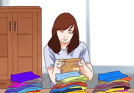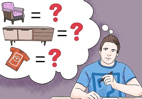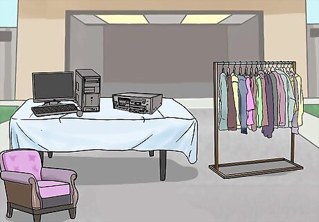 Make sure that you have enough table space. You can use tables and bookshelves from your house to display your items, Or you can rent folding tables if you don't have enough. While customers do see and buy items that are on the ground, it's important to display small items on tables. This protects them from foot traffic and allows people to easily inspect them. If you're using furniture from your home to display your wares, make sure that this not-for-sale furniture isn't mistaken for something that's up for grabs. Consider draping a sheet or a tablecloth over tables to hide the furniture itself but preserve the display space.