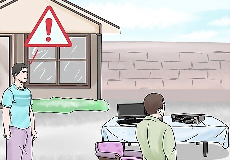 Lock up your house to deter opportunistic burglars. During your sale, lock all doors into the house. This includes back doors, front doors, and side doors. As well, windows and close screen doors. There may be a thief, or thieves working together, looking for a five-finger-discount on the valuables inside your home that you aren't selling. Crowds bring distraction. It's important to place yourself and your items in a place where you can easily see everything.