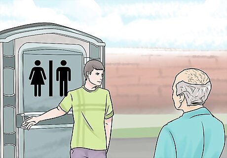 Have a bathroom plan. The larger your garage sale, the longer people will stay; the longer people stay, the more likely it is that they'll need to use the restroom. Some customers may ask to use your home restroom. You are under no obligation to let anyone into your house, even to use the restroom, but you might consider making exceptions for small children or the elderly. If someone really needs to go to the bathroom, direct them to the nearest public building.