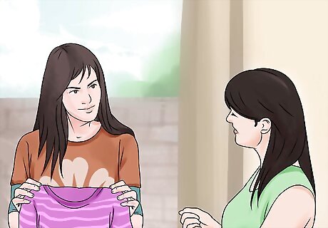 Keep an eye on your customers. A garage sale brings all kinds of people, including shoplifters. Keep your wares in plain sight and avoid leaving the sale unattended for more than a few moments at a time. Consider asking friends or neighbors to help you run the sale so that there's always someone watching over the customers. The more eyes you have on your side, the more likely you'll be to catch shoplifters in the act. As long as people know you’re watching, you probably won’t run into much trouble, but if somebody does steal a small item, it’s probably not worth confronting them. Use your best judgment. If the thief is a neighborhood kid, you might consider confronting him and telling his parents. If the thief is a surly, dangerous-looking stranger, you may want to let them take the item without a struggle. If you suspect that someone has stolen something valuable, confront them tactfully and call the police if necessary, but do not attempt to detain them.