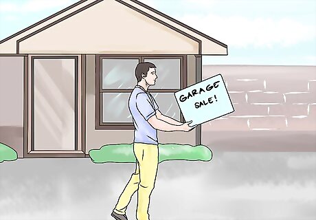 Advertise your sale. You don't need to advertise ahead of time, but it may dramatically increase your customer traffic. Your local newspaper may offer a deal on ads for garage sales. If your sale is happening on Friday, you should have an ad in the paper by Wednesday or just on Thursday. You also want to make sure to get your ad into the paper before the deadline, which could be several days in advance before you plan to show the ad in the paper Advertise in free weekly community shopping papers and on community bulletin boards in grocery stores and laundromats. Spread the word through your local neighborhood grapevine. Don’t overlook the internet. There are many sites that allow you to place advertisements for free. Post to Facebook, Twitter, Instagram, and other social media platforms. Invite your network to peruse your wares.