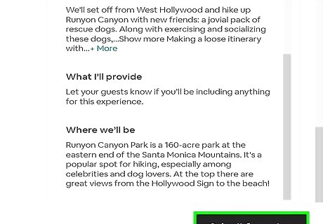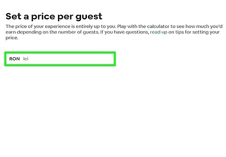 Set a price for your adventure according to the cost of accommodations. Calculate how much all the food, lodging, and transportation will cost you. Then, factor in how much money you would like to make from the tour. The price is up to you, so browse other adventure listings to see what looks fair. Keep in mind that Airbnb takes about a 3% cut of the final price, so plan for it and adjust accordingly. If you’re not getting a lot of reservations, it could be because your price is too high. Make adjustments to attract more guests.