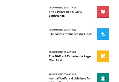 Lead the adventure and take guests back after it is finished. Complete the adventure according to the itinerary you planned. When you’re done, take guests back to a selected endpoint where they can all go their separate ways. Sometimes adventures don’t go as planned, so handle issues as best you can as they arise. Stay in touch with Airbnb if you encounter a problem you can’t handle. Airports, hotels, and other transportation hubs are good ending points for the trip. Help your guests arrange transportation if they need to go elsewhere. Do your best to stay on schedule during the adventure. Since adventures are so well-planned, this isn’t usually an issue, but have backup plans just in case. Emergencies are unavoidable sometimes, so contact Airbnb if something unusual happens. Airbnb will provide support and refunds, if necessary. Stop the adventure if you’re faced with an unavoidable safety hazard.
