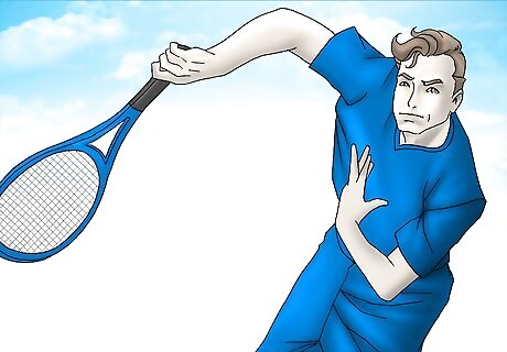 Condition and Practice---People with a strong serve normally require a lot of energy in order to keep up their serve throughout the match. To keep yourself from losing stamina during a match, you should condition yourself daily, and practice your serve over and over again to ensure that you will not get tired or disrupted by fatigue. During warmup, practice all the main shots, including the serve. A good warmup prevents injury and gets your body ready for the court. Tennis players need shoulder strength and mobility. Use the elastic band to replicate tennis shots, including serve. Novak Djokovic uses elastic bands, especially to warm up his muscles and strengthen his tendons.