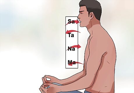 End with corpse pose. Most, if not all, yoga practices will end with corpse pose, or Savasana. This pose, although easy to perform, can actually be quite challenging as this exercise totally focuses on the mind-body connection. Corpse pose is when you lie flat on the floor at the end of your yoga practice. You should work on quieting and focusing your mind. Many instructors say to focus on your intention for the day and concentrate on how you’re going to continue that intention outside of your yoga practice. If you’re having trouble keeping your mind quiet or focused, repeat your intention like a mantra or focus on your breathing. Aim to rest in corpse pose for 5-10 minutes at the end of each practice. Spend this time working on your relationship with yourself and listening to your inner voice.