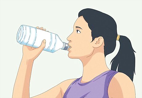 Stay hydrated. The health benefits of drinking lots of water are numerous - it can help you lose weight, prevent kidney stones, and much more. Water can also increase stamina by fighting muscle fatigue. Muscle tissue that is under-hydrated can under-perform, so keep your stamina up by drinking water a few hours before strenuous exercise and during your workout as well.If you're starting on a long-distance run or an extended exercise, have plenty of fluids with you so they'll be available if you get thirsty later. If you're likely to drink more fluid if your drink is flavoured, consider using a sports drink like Gatorade, Powerade, etc. to dilute with water in a 7:1 ratio. Add just a splash of the sports drink to your water to add some flavor. These drinks have the added benefit of replacing your body's electrolytes - important nutrients involved in muscle function that are lost when you sweat. However, if you're also trying to lose weight, note that these drinks can be calorie-dense. Use caffeinated energy drinks sparingly. They're good for a short boost, but can hamper long-term stamina. Reader Poll: We asked 123 wikiHow readers how they like to stay hydrated during the day, and 67% of them shared that they always carry a water bottle with them. [Take Poll] So, carrying a water bottle may help you to stay hydrated and energized!