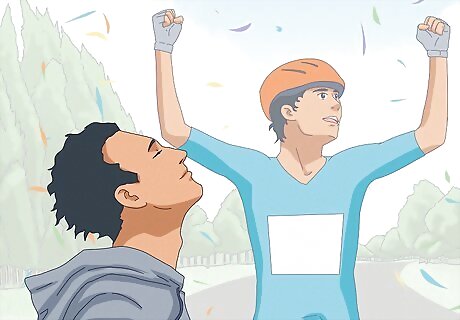 Visualize your goal. It's easy to get mentally sidetracked if you're focused on the difficulties that lie in the details of the task you're trying to complete, rather than the goal you hope to achieve. Don't miss the forest for the trees - never lose sight of the prize. Always keep your final product in mind as you approach any trying task - this will help you stay focused and keep you from wasting time on inconsequential side-tasks. You don't even have to focus on your literal goal - you can try thinking of other triumphant imagery. Close your eyes and let your mind wander - build a mental picture of yourself finishing a race with a burst of speed or getting an A on the final exam. Just don't fall asleep! Avoid dwelling on the challenges, obstacles or hurdles you may face before reaching your goal, but be aware of them and work hard to overcome the hurdles and reach your goal. In school, keep your motivation high and build your stamina for studying prior to final exam week by hosting study sessions for friends all school year.