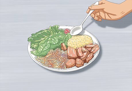 Eat a healthy, balanced diet. Food is the fuel your body gets its energy from. A healthy, well-balanced diet keeps your body healthy and energized, raising your stamina. Try to eat a well-balanced, low-fat diet that includes plenty of fruits, vegetables, and lean meats. To keep your body steadily supplied with energy throughout a workout, get energy by eating several smaller meals throughout the day rather than one or two large meals. Snack on fruits, raw vegetables, nuts and other lean proteins between meals. Carry high-energy fruit and nut mixes with you during times of extended performance, such as hiking, cycling or cramming for final exams.