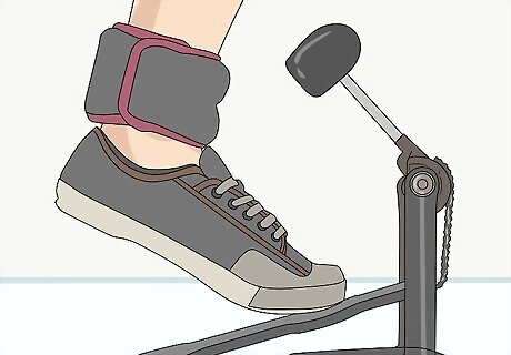 Use ankle weights to develop bass drumming speed and control. Wear ankle weights for at least 20 minutes during practice. Practice things like the heel-toe technique and using 2 pedals at once to increase your speed and control with various bass drumming techniques. When you remove the ankle weights, you will feel like your feet are floating and you will be much more relaxed and at-ease on the pedals.