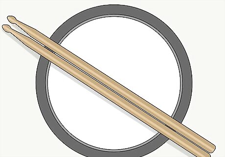 Play on a practice pad to develop better stick control. It’s easy to get distracted when you have a complete drum kit in front of you, so a practice pad forces you to focus completely on your stick control. Practice on a pad about half the time to really develop your stick control, speed, and technique.Tip: With just a pair of sticks, a practice pad, and a metronome, you can greatly improve your drumming skills. You can also take these things with you in a backpack to practice just about anywhere! If you don’t have a practice pad, you can use a pillow instead. There is virtually no bounce on a pillow, so it forces you to work even harder and bring the sticks back up with your wrists.