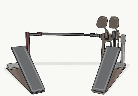 Use 2 bass drum pedals to play more complicated beats. Do this with either 2 pedals on 1 drum, or 2 pedals and 2 bass drums. This is another technique that will allow you to play more complex, faster patterns that are fairly difficult with a single pedal. Imagine how much harder playing drums would be with just 1 hand. This is how much easier playing complicated bass patterns will be when you can use both feet at the same time. You can use 2 bass pedals with the heel-toe technique to play extremely fast and complicated beats.