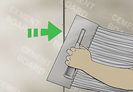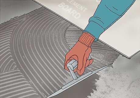 Complete the installation. The remaining steps are identical to installing tile on a concrete slab, less one tip: Use a damp sponge to wipe the cement board prior to applying thinset. This will keep the cement board from drying the thinset too fast and allow proper adhesion to the tile.
