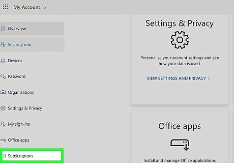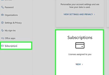 Click Services and subscriptions. This is a tab at the top of the Microsoft account dashboard page.