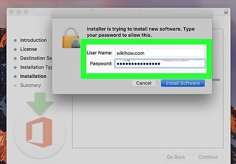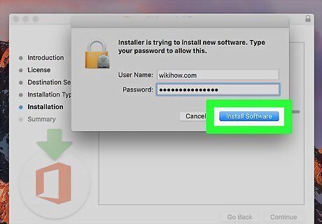 Click Install Software. It's in the bottom-right corner of the password entry window. Doing so will begin installing Microsoft Office on your computer. The installation process may take a while.
