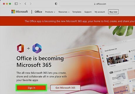 Go to https://www.office.com/. Click Sign in if you aren’t already signed in.