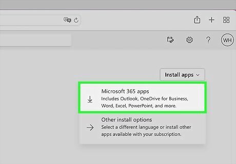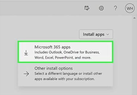 Click Install Office. This is a button on the Office home page. If you signed in to a work or student account, select Office 365 apps or Microsoft 365 apps after clicking Install Office.