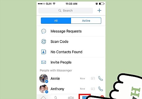 Tap the "People" tab at the bottom of your screen. This will take you to all of your available contacts. You can also access contacts through the "Active Now" list on the Home tab, which is where Messenger opens to by default.