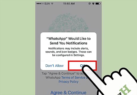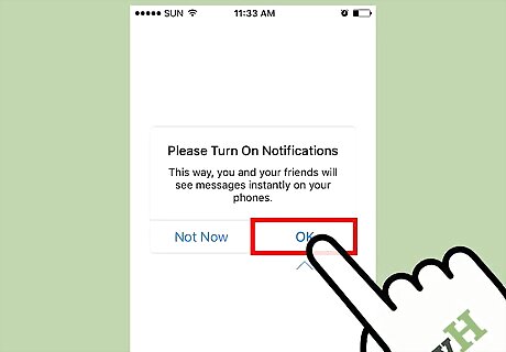 Allow WhatsApp to access your contacts when prompted. Opening WhatsApp for the first time will bring up a menu asking for permission to use your contacts; you'll need to press "OK" to enable this option.