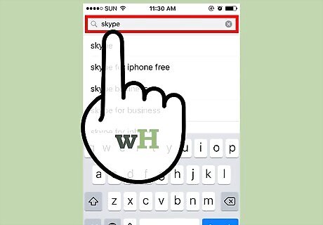 Type "Skype" into the search bar to find Skype. Skype is a robust video- and voice-chat app with texting functionality.