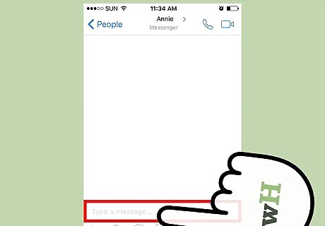 Type your message in the field at the bottom of your screen. You can add photos or emoji to this conversation from beneath the text field as well.
