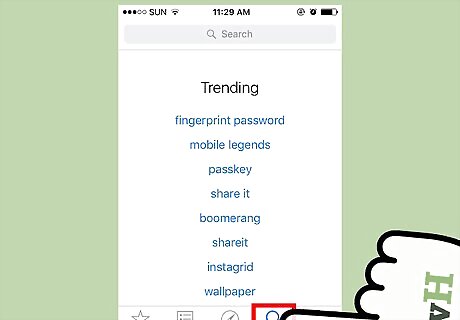 Activate your app store's search function. You can type your app's name in from here. For an iPhone, tap the "Search" button in the bottom right side of your screen. If you're using an Android, tap the magnifying glass icon in the top right corner of your screen.