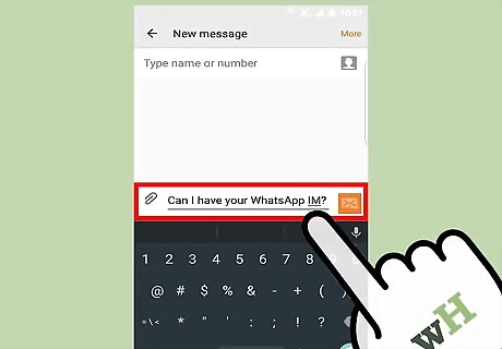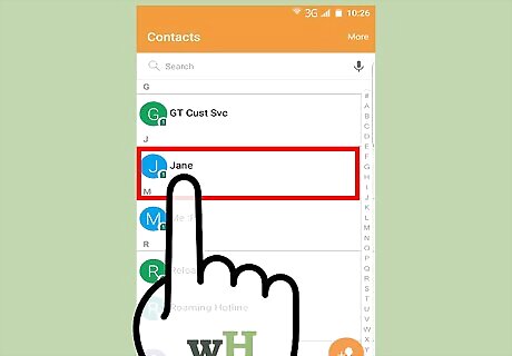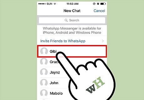 Tap on a contact's name. This will select that contact for your instant message. You can also do this from the "Contacts" tab by tapping a contact's name and then tapping "Send Message". This contact must be on WhatsApp to receive your message.