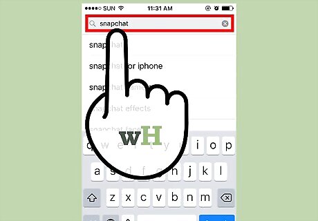 Type "Snapchat" into the search bar to find Snapchat. Snapchat is a casual social app from which you can send picture, video, and text messages.