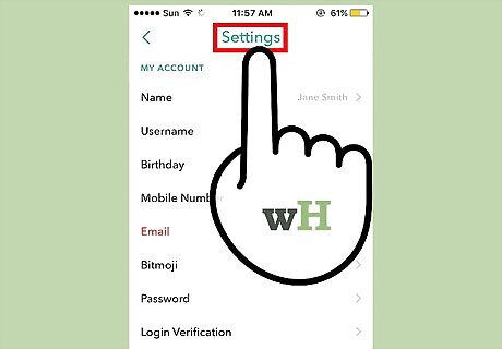 Swipe down on Snapchat's main page. This is the camera interface; doing so will open Snapchat's settings page.