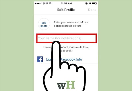 Enter your name and a photo. This will help identify you to contacts. You can also tap "Use Facebook Info" to use your Facebook picture and name.