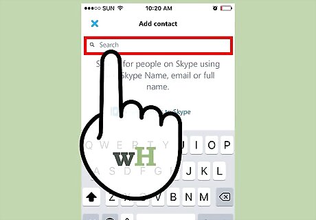 Type the number or username of a contact. You should have this information from when you updated your phonebook. If your preferred contact has a Skype account, they will show up; tap their name to open a conversation with them.