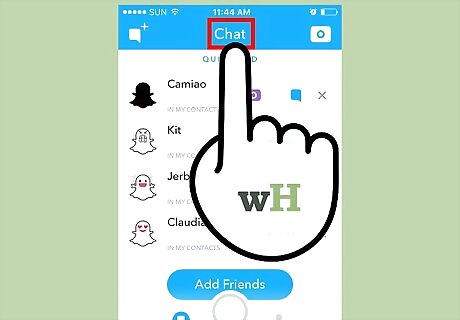 Swipe right on your main page. This will take you to the "Chat" page. You can also tap or hold the circular button on the main page to take a photo or a video, respectively.