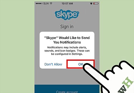 Allow Skype to access your contacts when prompted. Skype will request access to your contacts when you open it for the first time, so make sure you enable this option by tapping "OK".