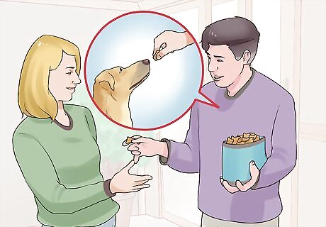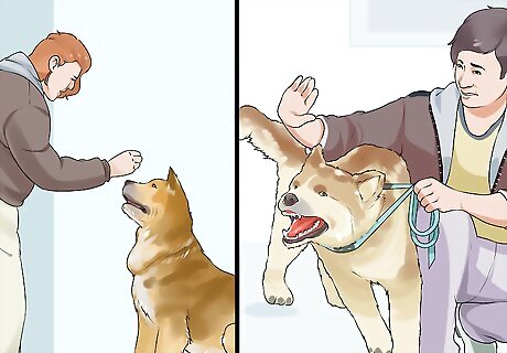 Give consistent training. If your dog doesn't react to strangers in a way that you want it to, then you will need to spend some time training it. This is usually done with positive reinforcement and consistency. Specifically, you will need to get your dog to reliably respond to commands and you will need to introduce it to a wide range of people so that the experience becomes normalized. If your dog is actually aggressive with strangers, as opposed to scared or hesitant, then you will need to go about this training more strategically. The dog may even require the expertise of a professional dog trainer. Be consistent with your training even if your dog does well when it meets your neighbors. Being consistent will keep the training fresh in your dog's mind.