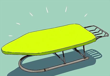Choose a tabletop ironing board. Full-size iron boards can be unwieldy and difficult to set up. Instead, consider using a smaller, tabletop board. They’re easier to store and set up, and will allow you to choose almost any place in your home to iron clothes. There are also ironing board alternatives, like heat-resistant magnetic pads that stick to the tops of washers or dryers. Other non-magnetic substitutes that don’t stay in place, like a blanket or towel laid over a tabletop, are cumbersome and aren’t the best options.