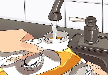 Fill a steam iron with water. If you’re using an iron with a compartment for water, you can fill it using a turkey baster or funnel. Carefully fill it prior to plugging it in, and listen for the sound of the water to become higher in pitch as you pour. While you’re ironing, you can monitor the water level by gently shaking the iron.