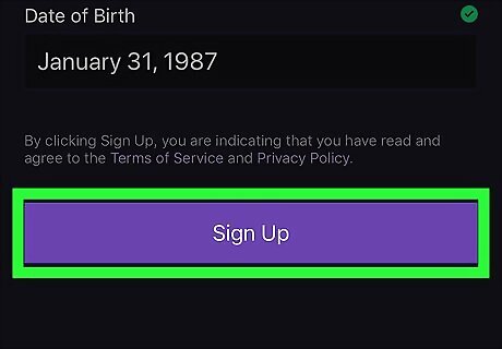 Tap Sign Up at the bottom. This will submit your new account information, and send you a confirmation email with a verification code.